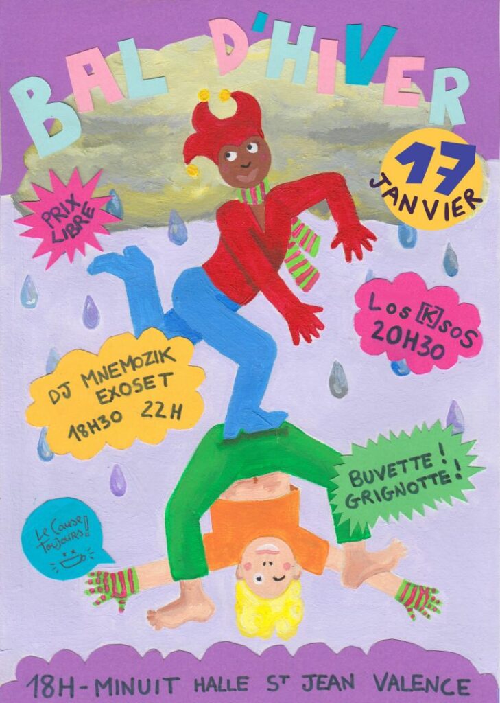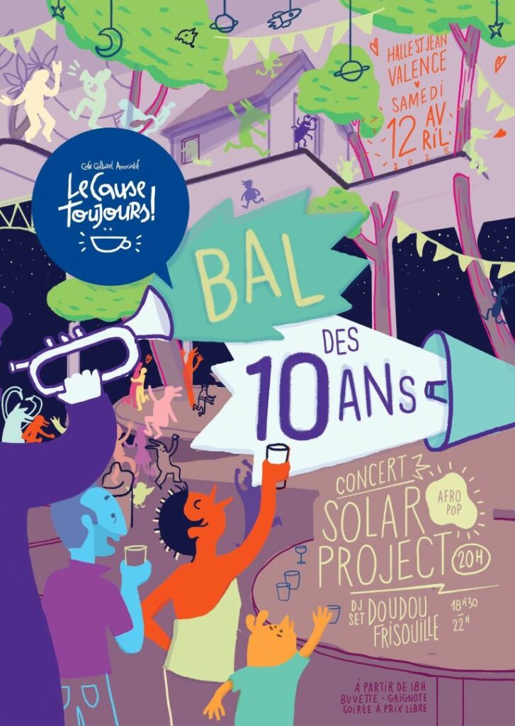 Ainsi, à chaque changement de saison, le Bal (bal@lecausetoujours.fr) propose un cadre convivial et festif de rencontres avec l’ambition de mixer les publics : familles, jeunes, moins jeunes. Il apporte musique et culture dans l’espace public, il invite petits et grands à se rencontrer et à danser !